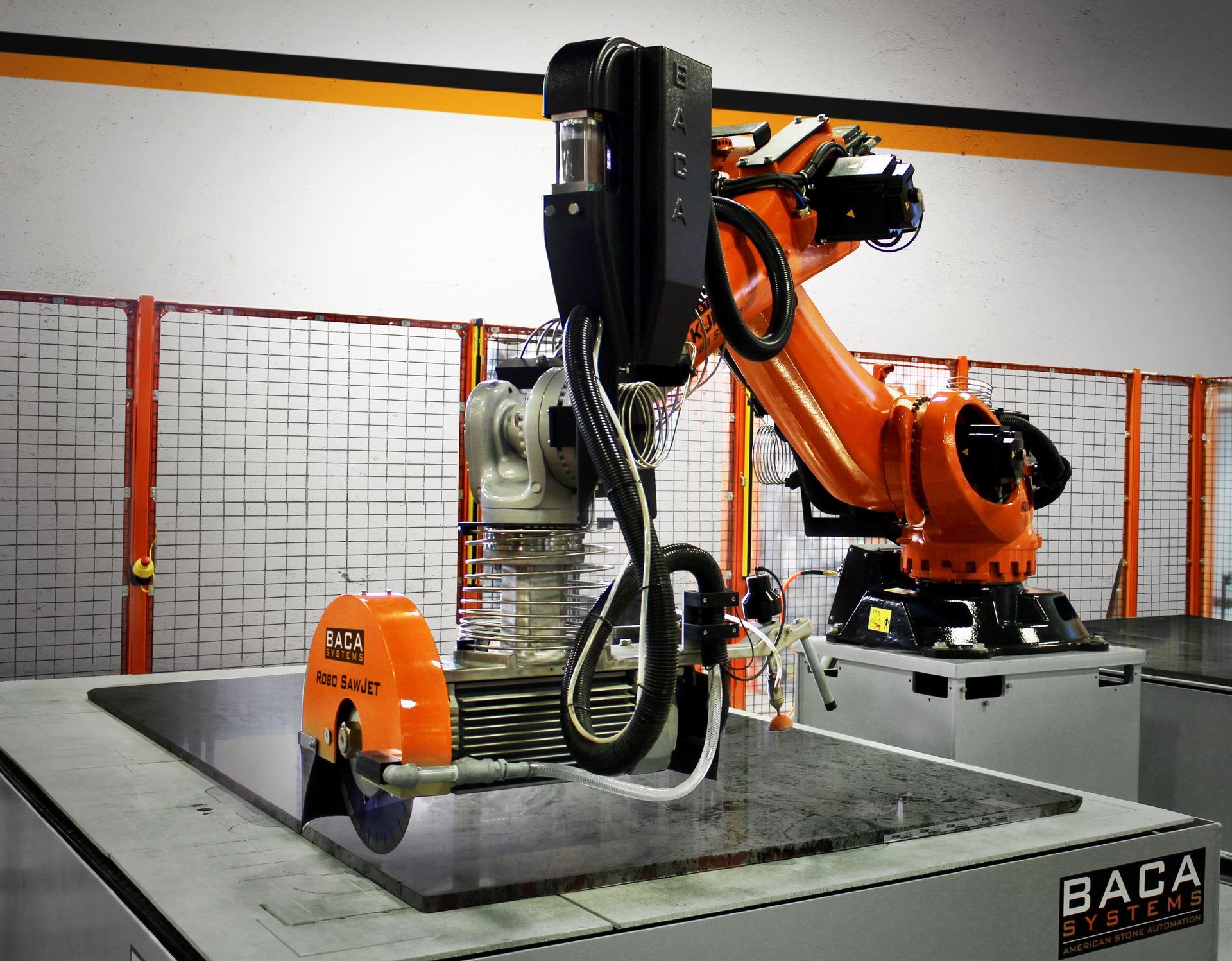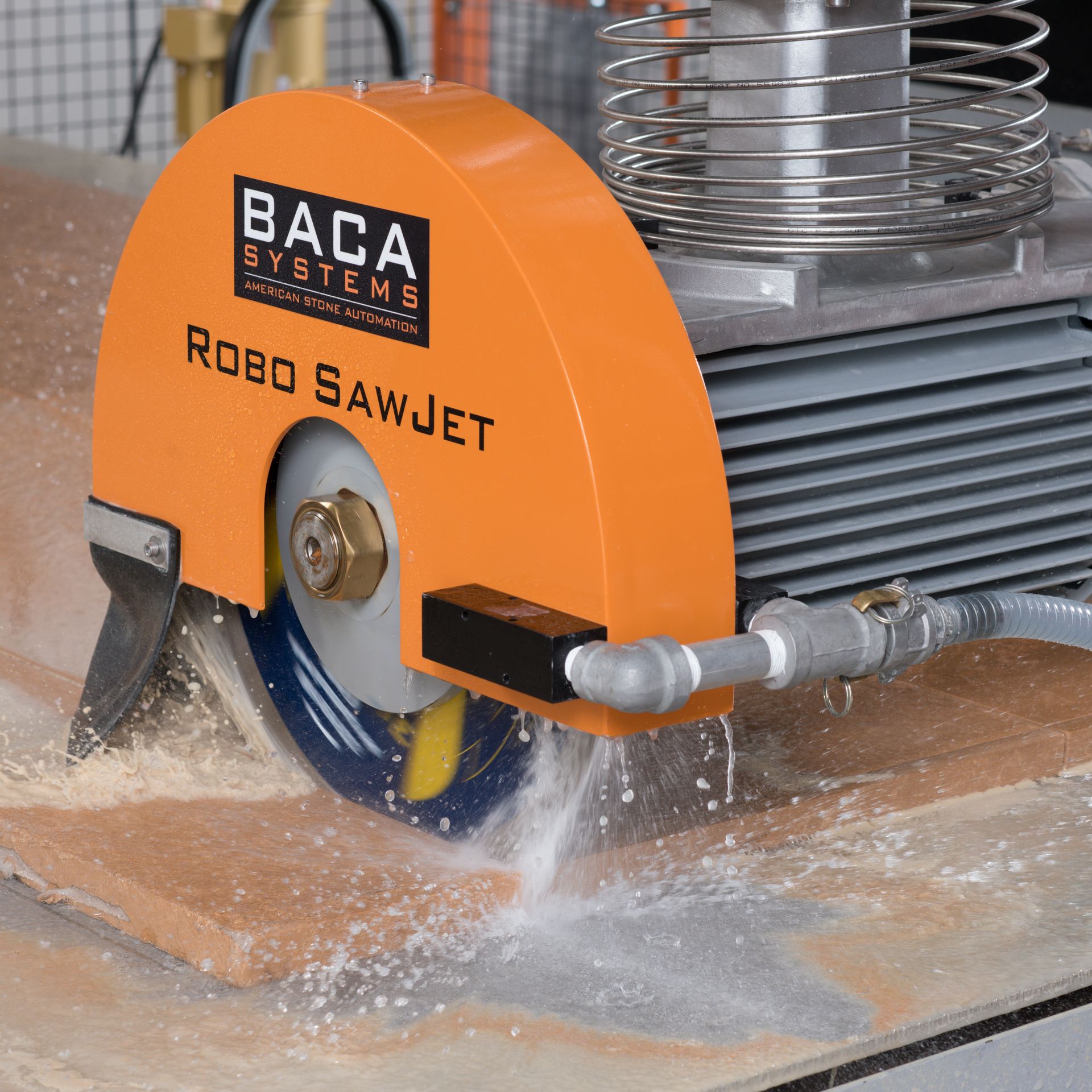 The water jet feature on the BACA Robot SawJet 2.0 allows for precise cutting of materials like granite, marble, quartzite, and porcelain. The high-pressure water and abrasive material ensure clean cuts and intricate detailing. It also provides a smooth, polished finish, eliminating the need for extra polishing, saving time and resources while maintaining high quality.